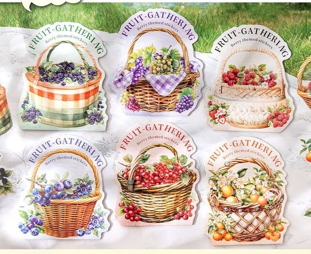 シール・紙もの 果物狩り 6種類90枚入り コラージュ 素材