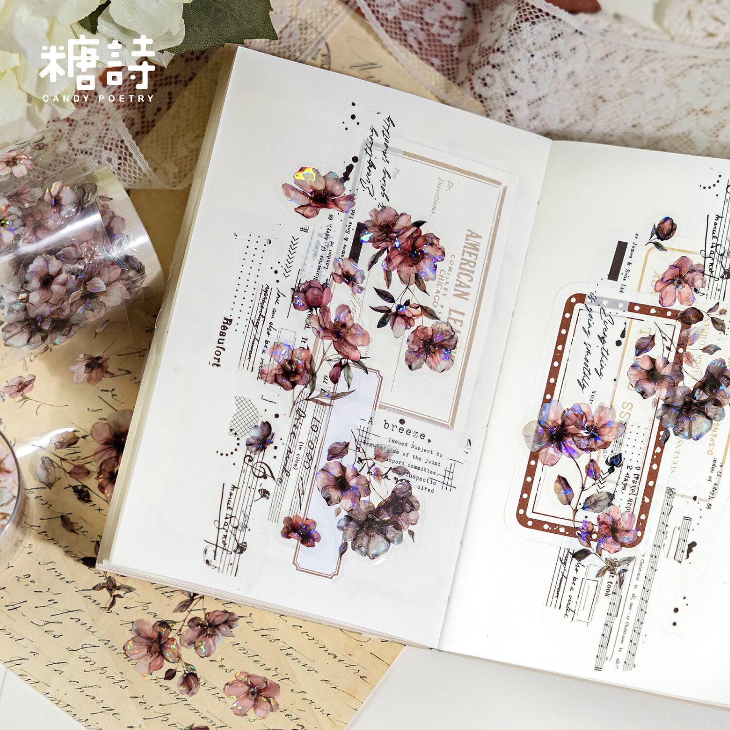 ロールシール 花シリーズ 6種類各2m コラージュ 素材