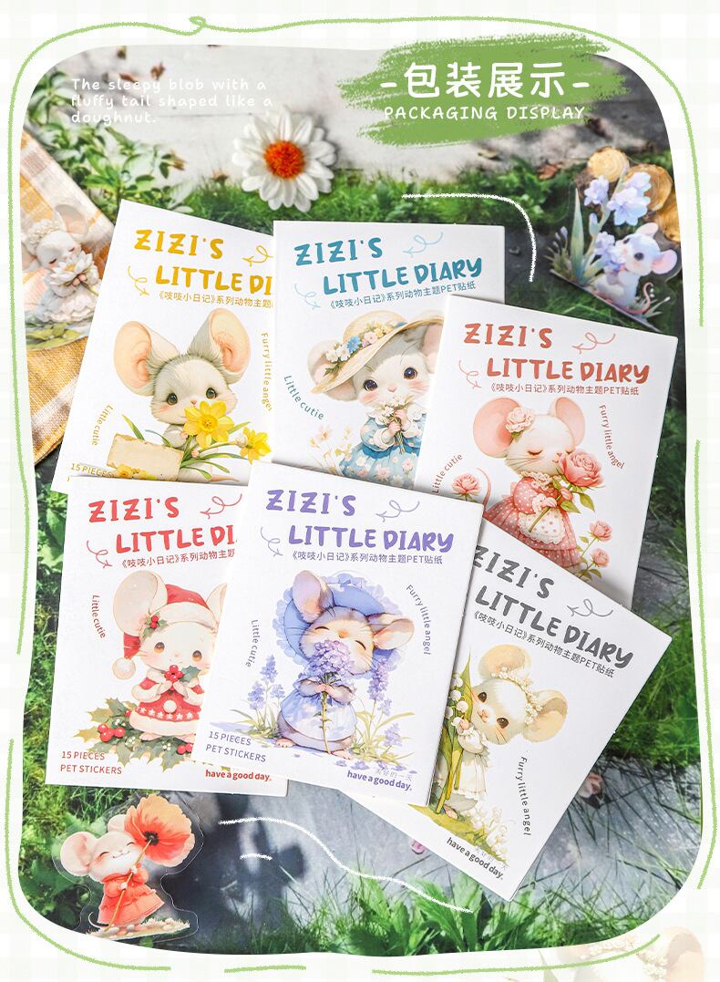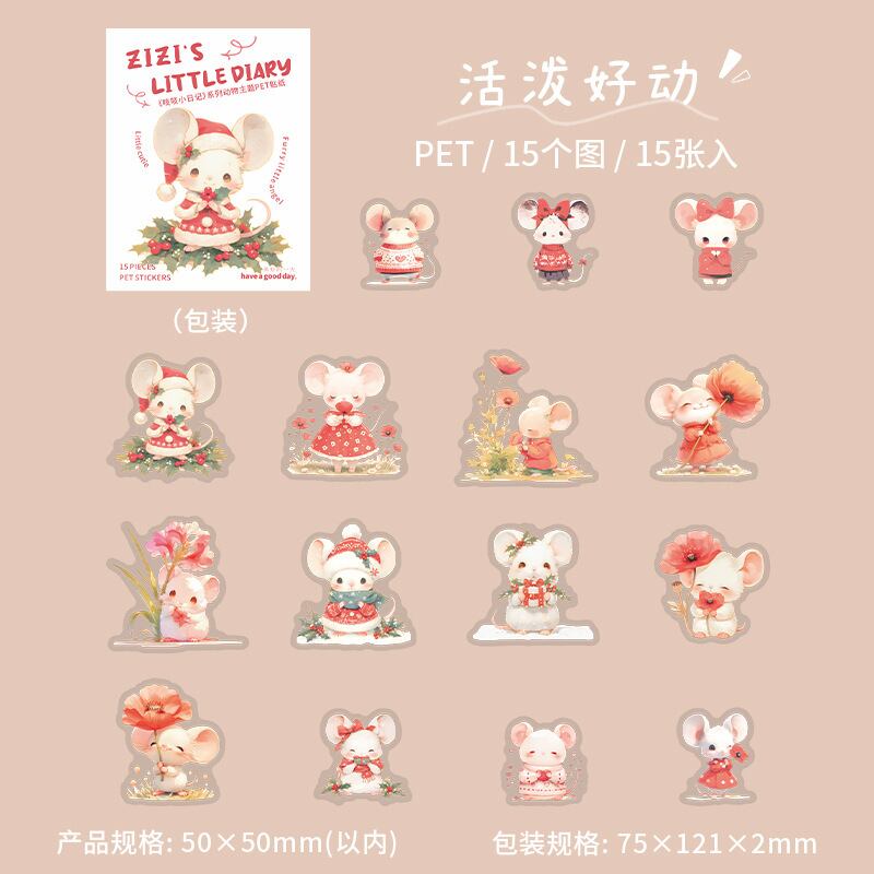 シール ネズミの小さな日記 6種類90枚入り コラージュ 素材