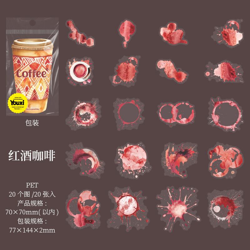 シール コーヒー色 6種類120枚入り コラージュ 素材