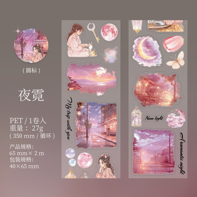 ロールシール 月明かりの夜のカーテン 6種類各2m コラージュ 素材