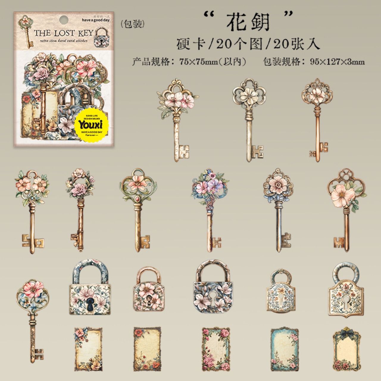 シール 鍵の紛失 6種類120枚入り コラージュ 素材