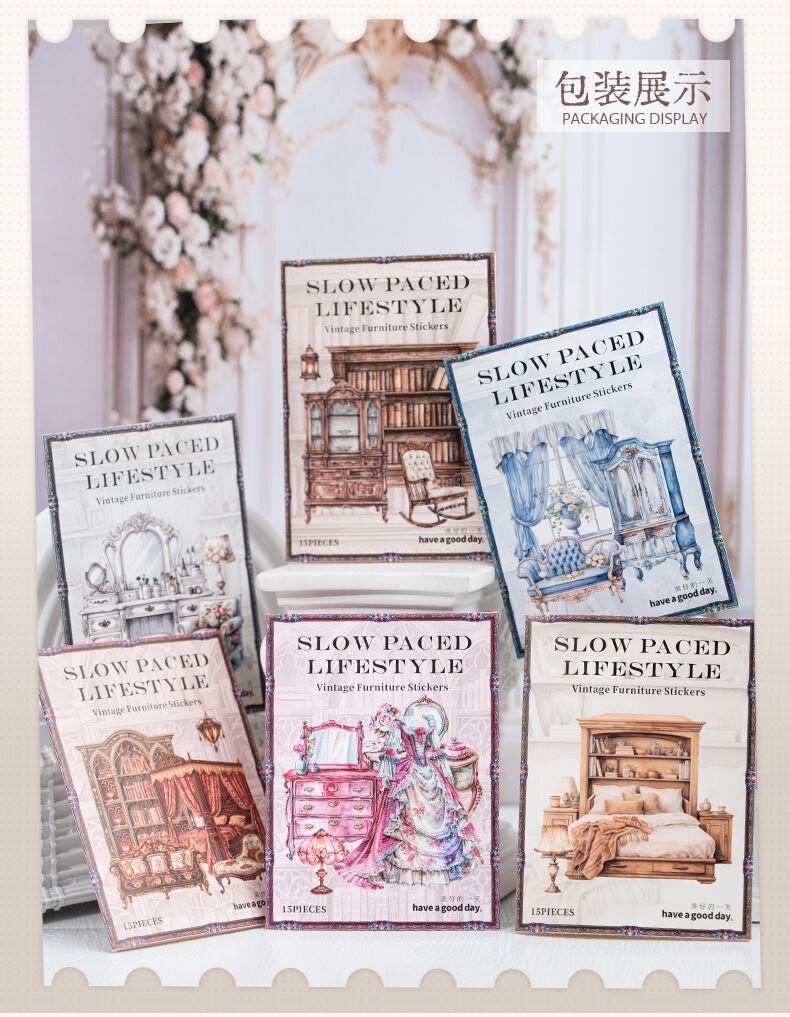 シール ゆっくりとしたペースのライフスタイル 6種類90枚入り コラージュ 素材