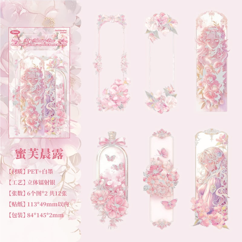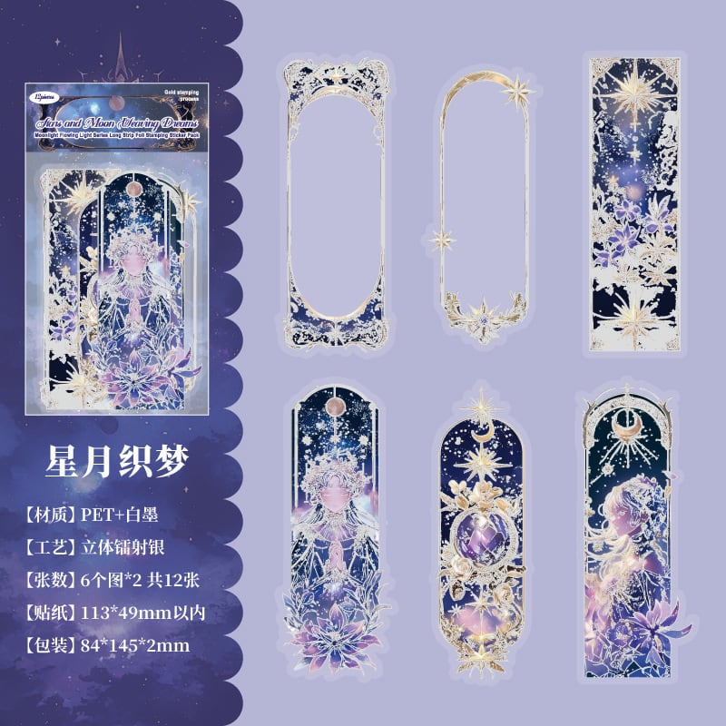 シール 月の隠れた流れる光シリーズ 6種類72枚入り コラージュ 素材
