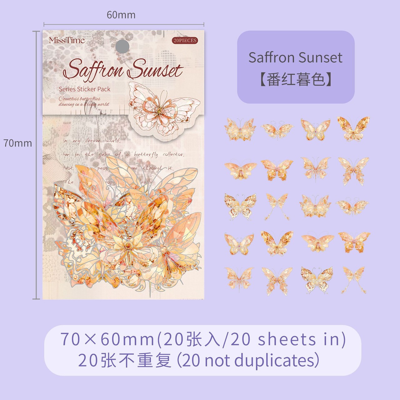 シール クォーツバタフライステッカー 6種類120枚入り コラージュ 素材