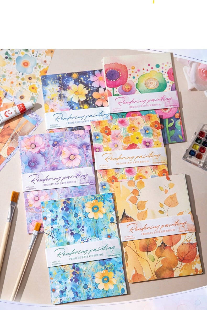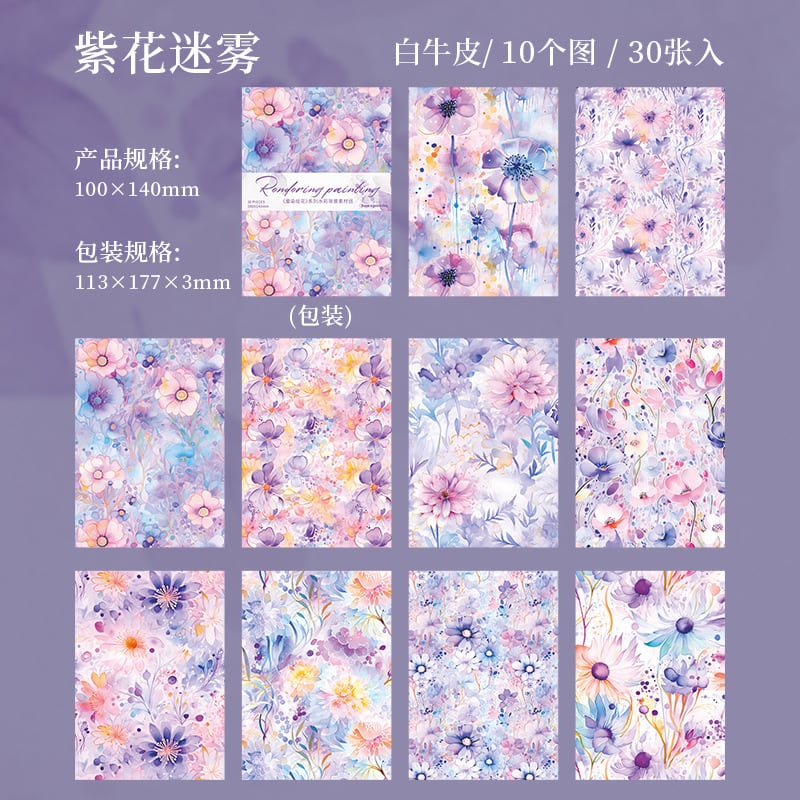 紙もの 花のレンダリングとペイント 6種類180枚入り コラージュ 素材