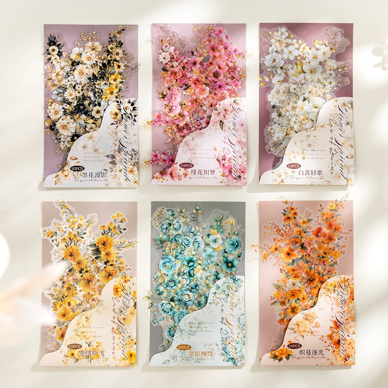 シール 花を広げる 6種類60枚入り コラージュ 素材