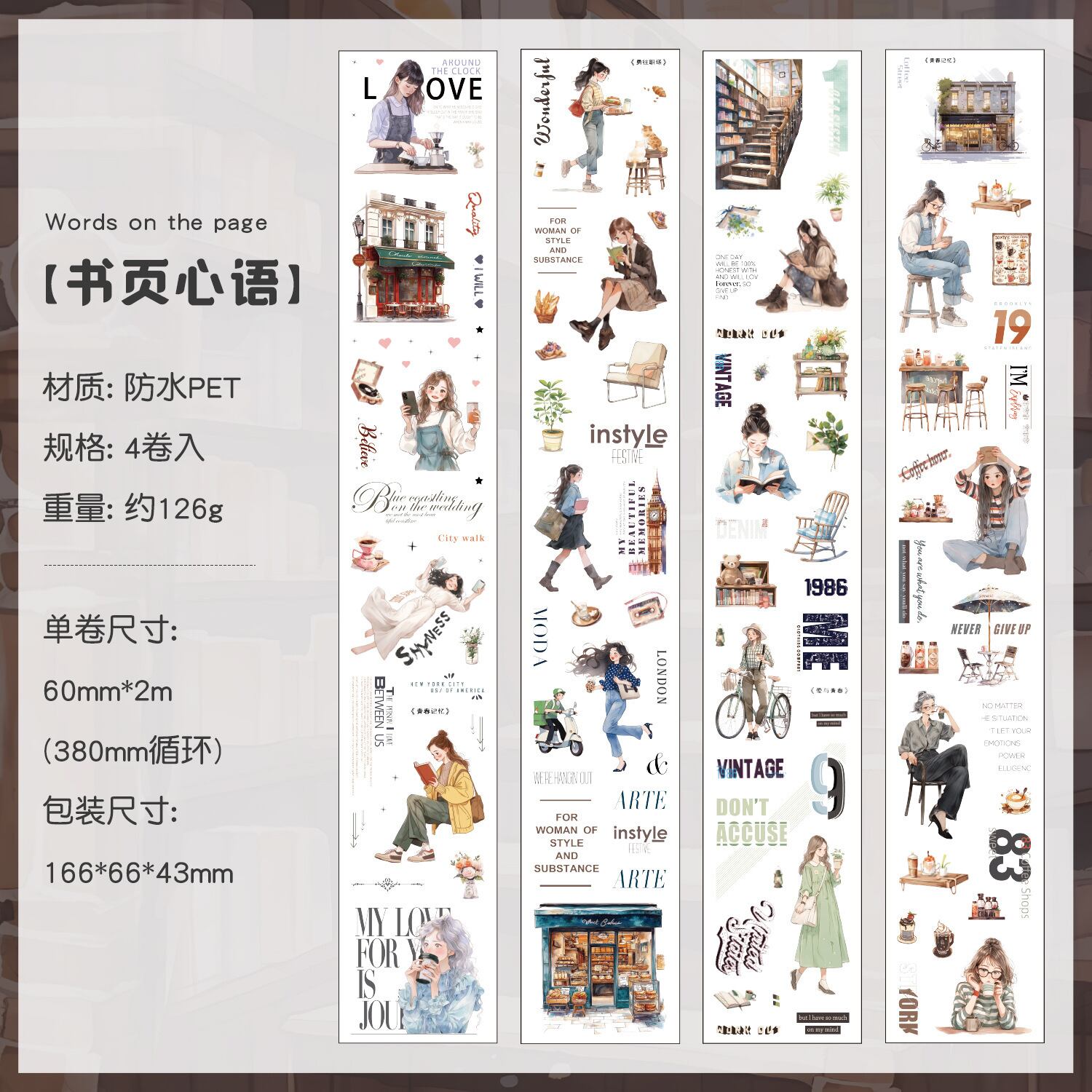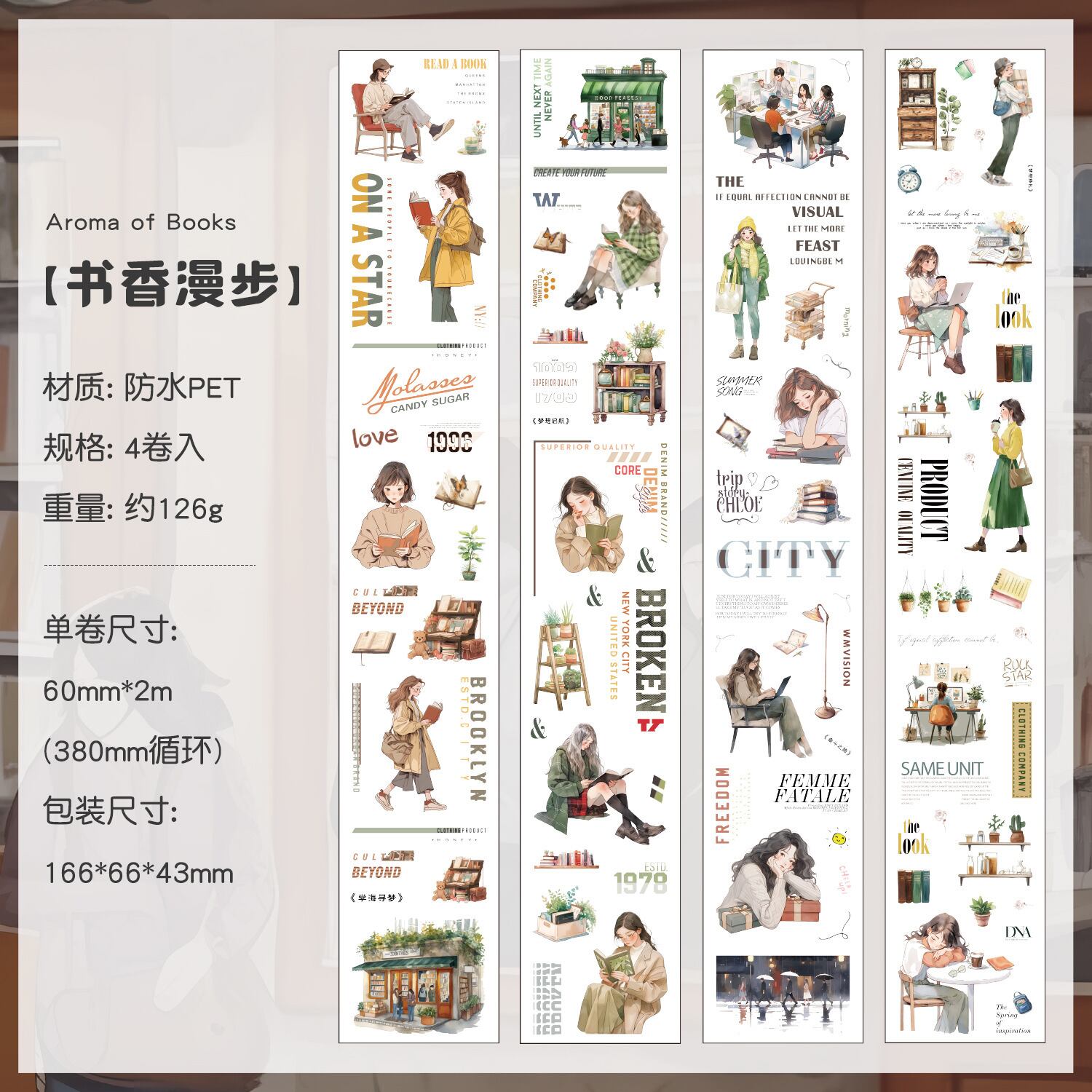 ロールシール ページの間の夢 4種類各2m コラージュ 素材