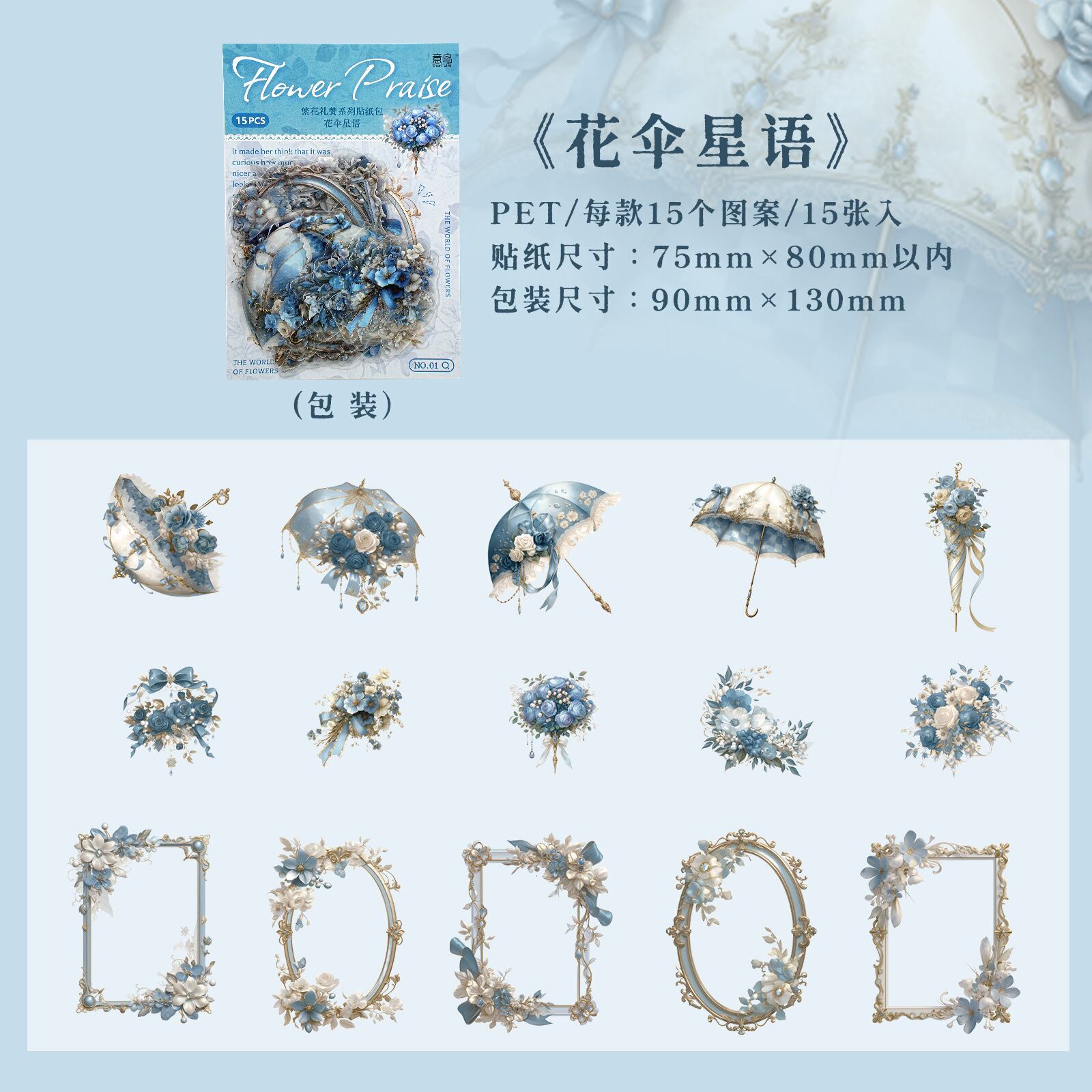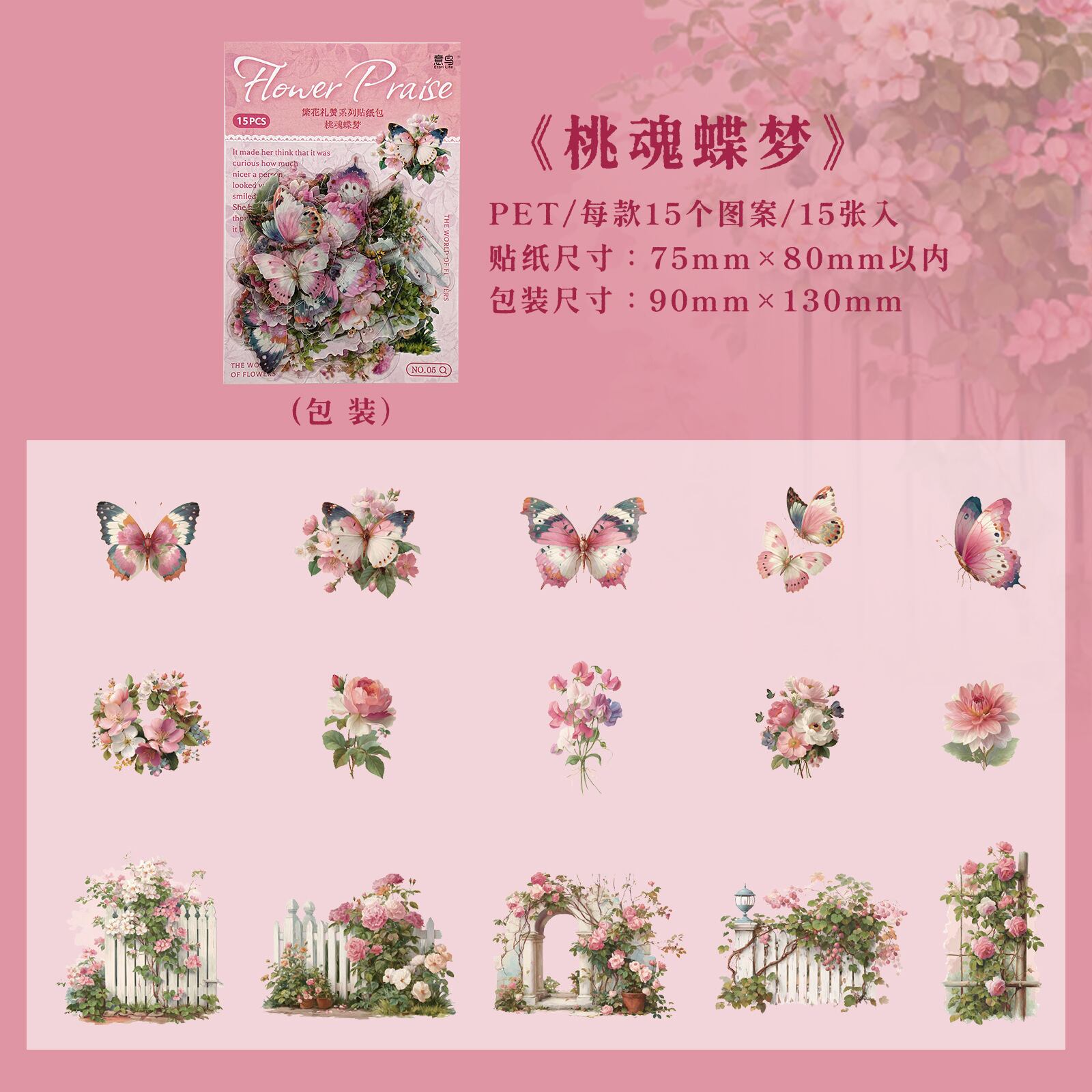 シール 花を讃えるシリーズ 6種類90枚入り コラージュ 素材