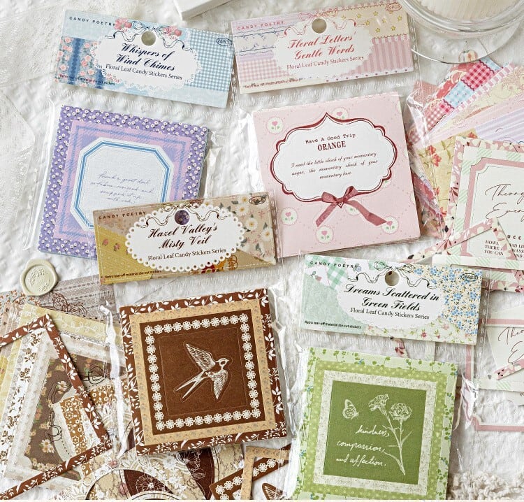 シール 花葉キャンディステッカー 4種類80枚入り コラージュ 素材