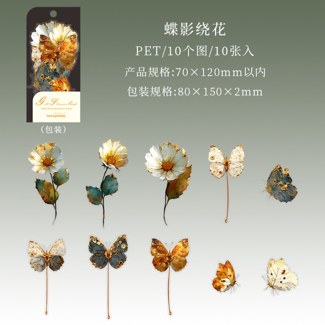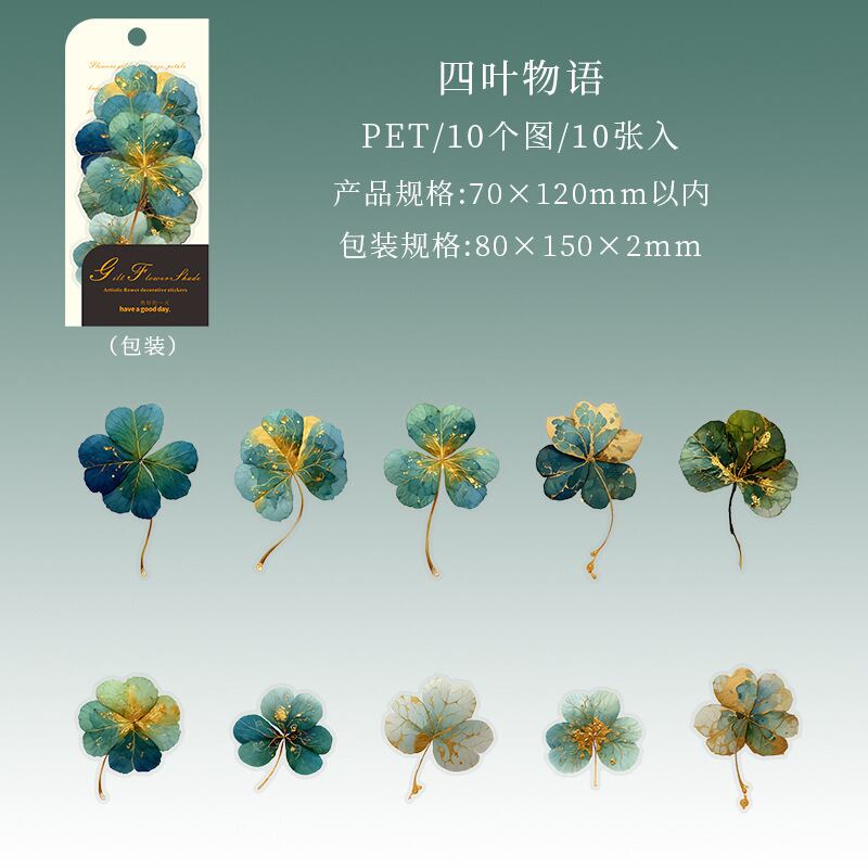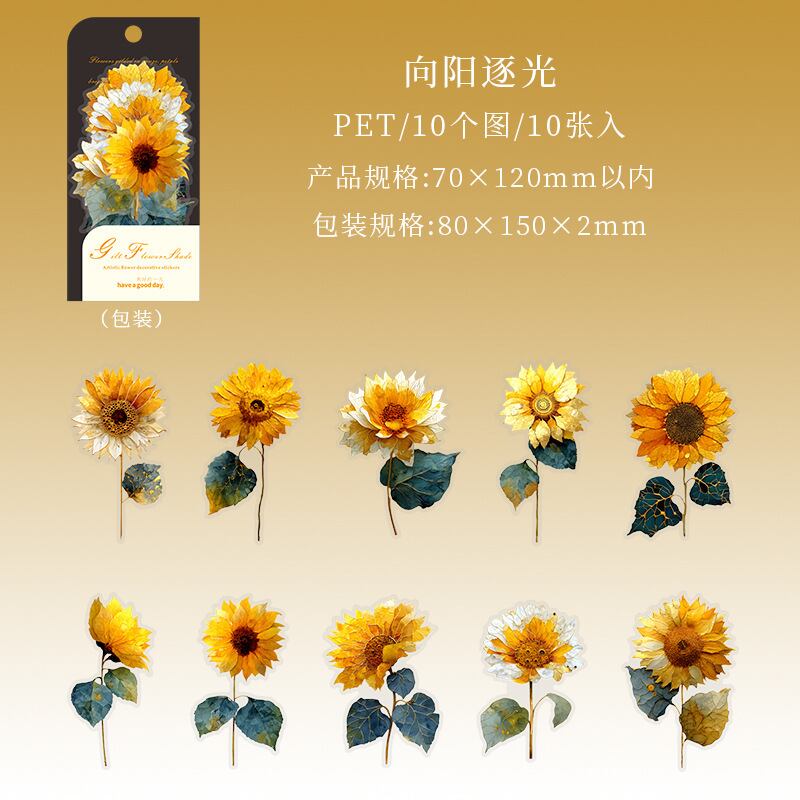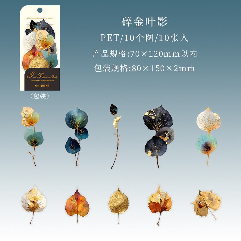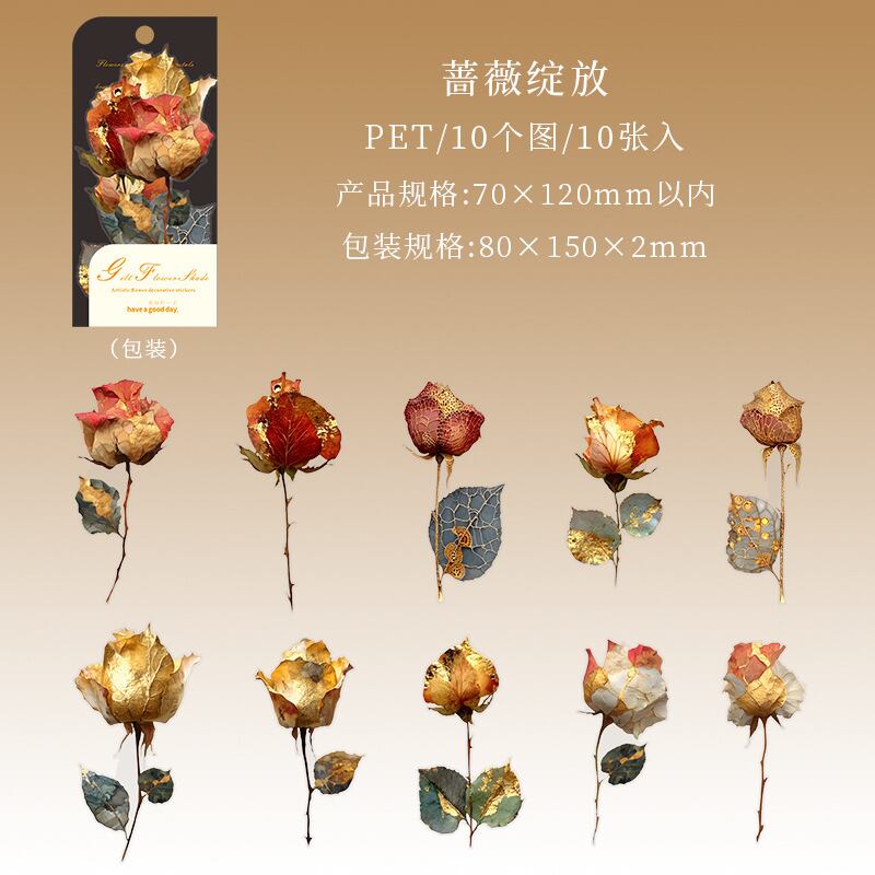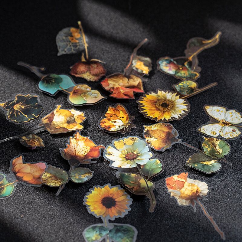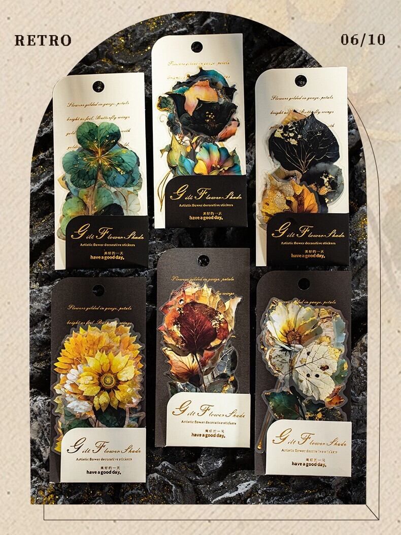 シール 金色の花の影 6種類60枚入り コラージュ 素材