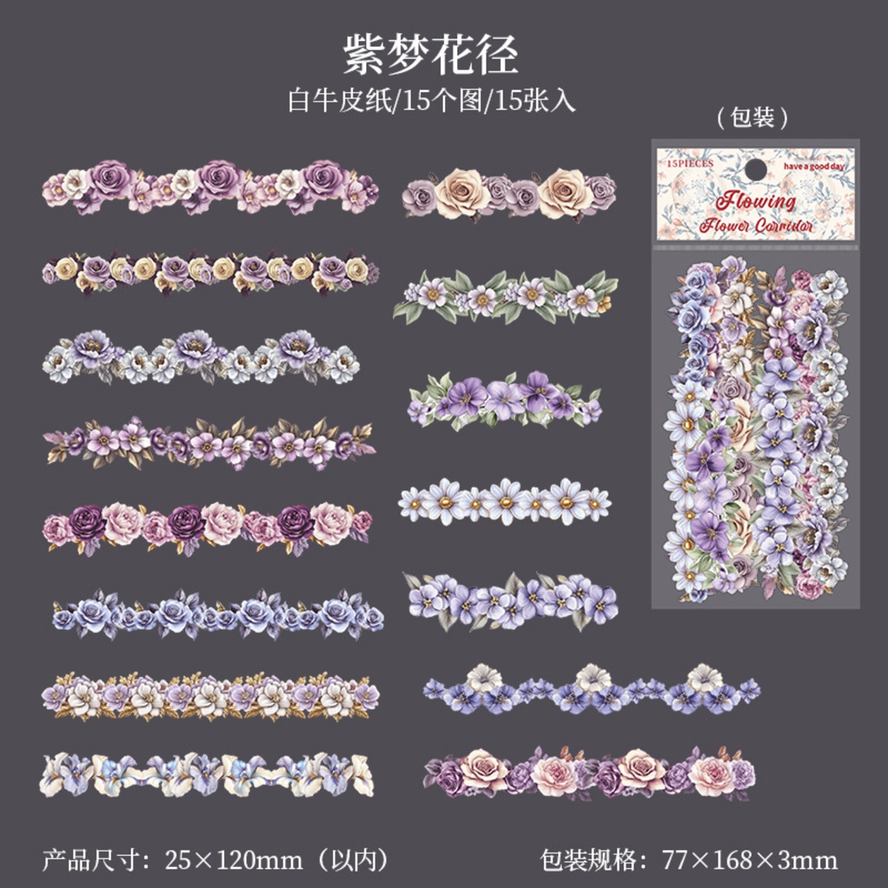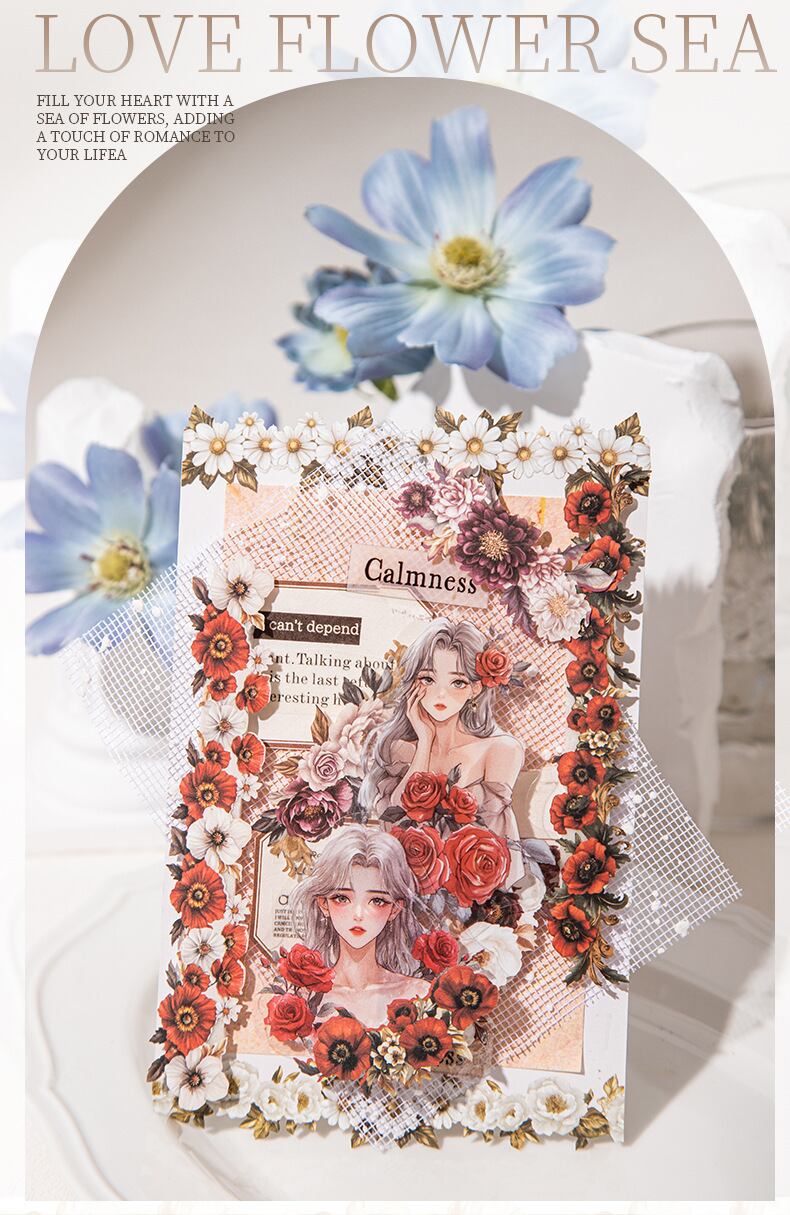 シール 流れる光の花回廊 6種類90枚入り コラージュ 素材