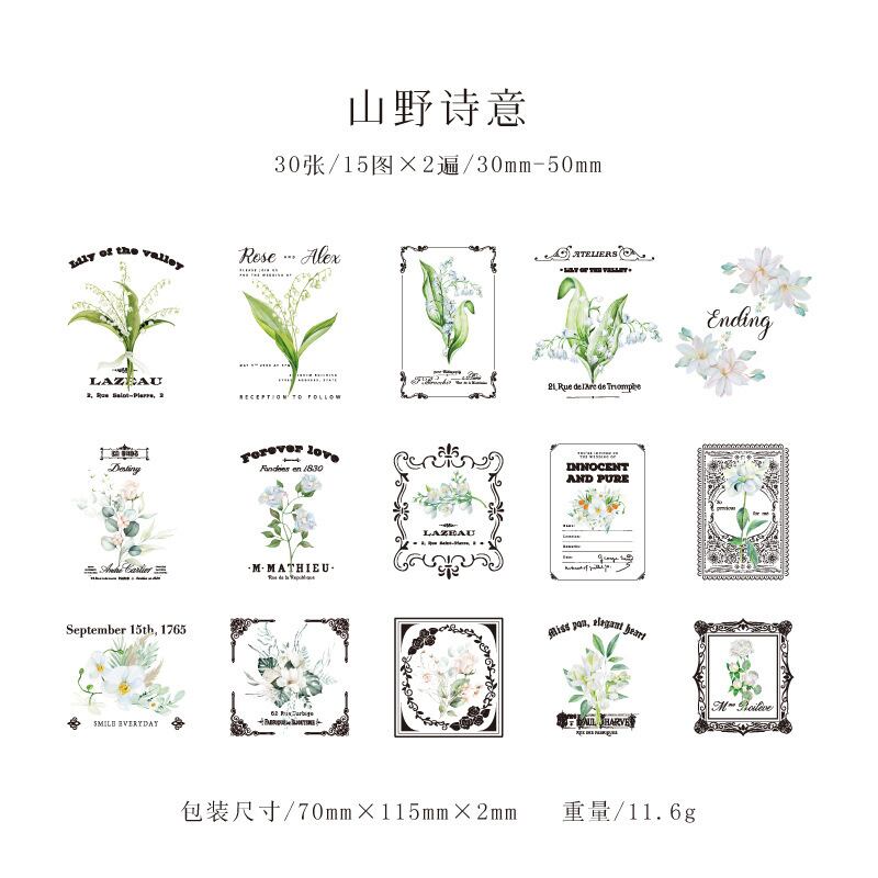 シール フローラルノートシリーズ 6種類180枚入り コラージュ 素材