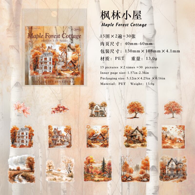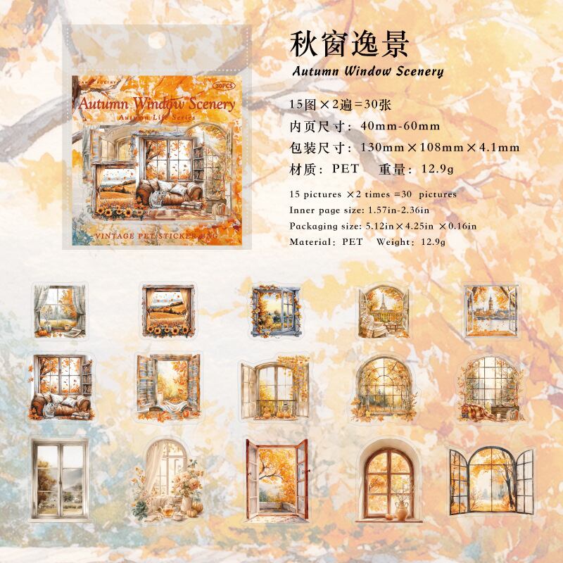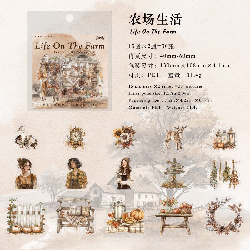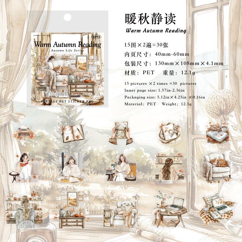 シール 秋のライフスタイルシリーズ 6種類180枚入り コラージュ 素材