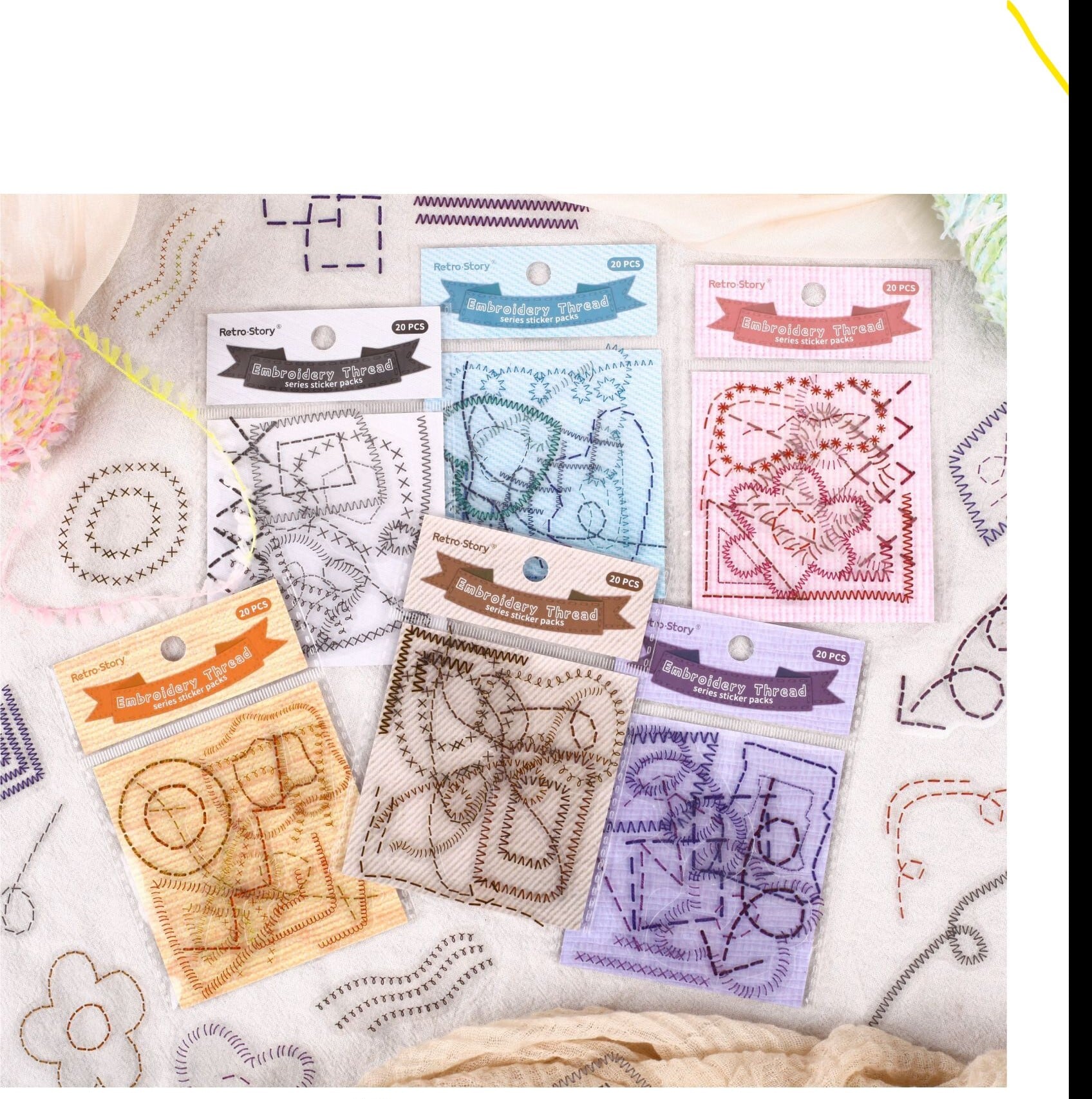 シール 刺繍糸ステッカーパック 6種類120枚入り コラージュ 素材