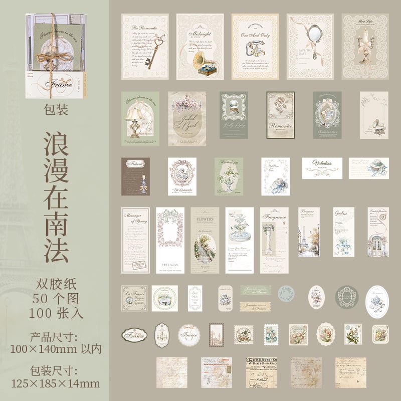 紙もの・シール フランスのロマンス 100枚入り コラージュ 素材