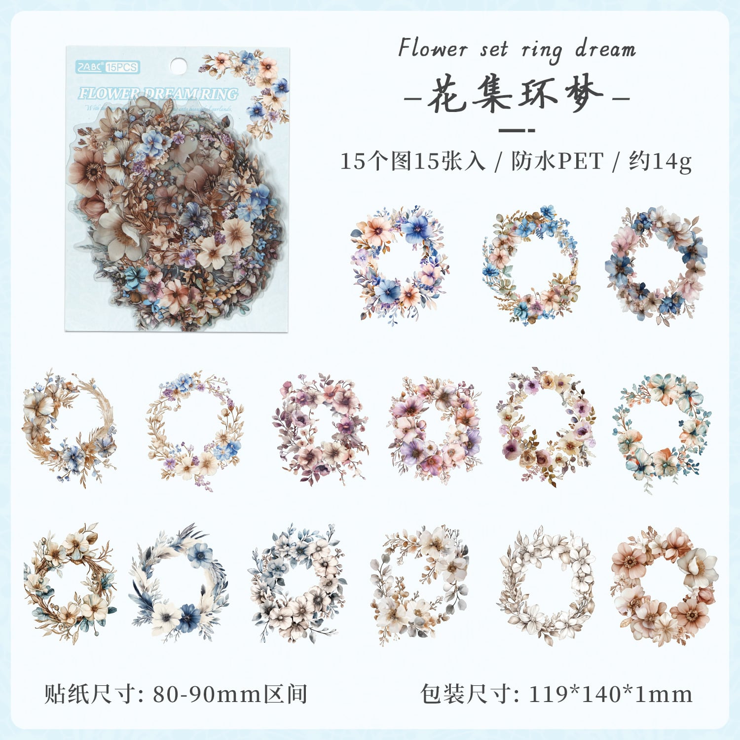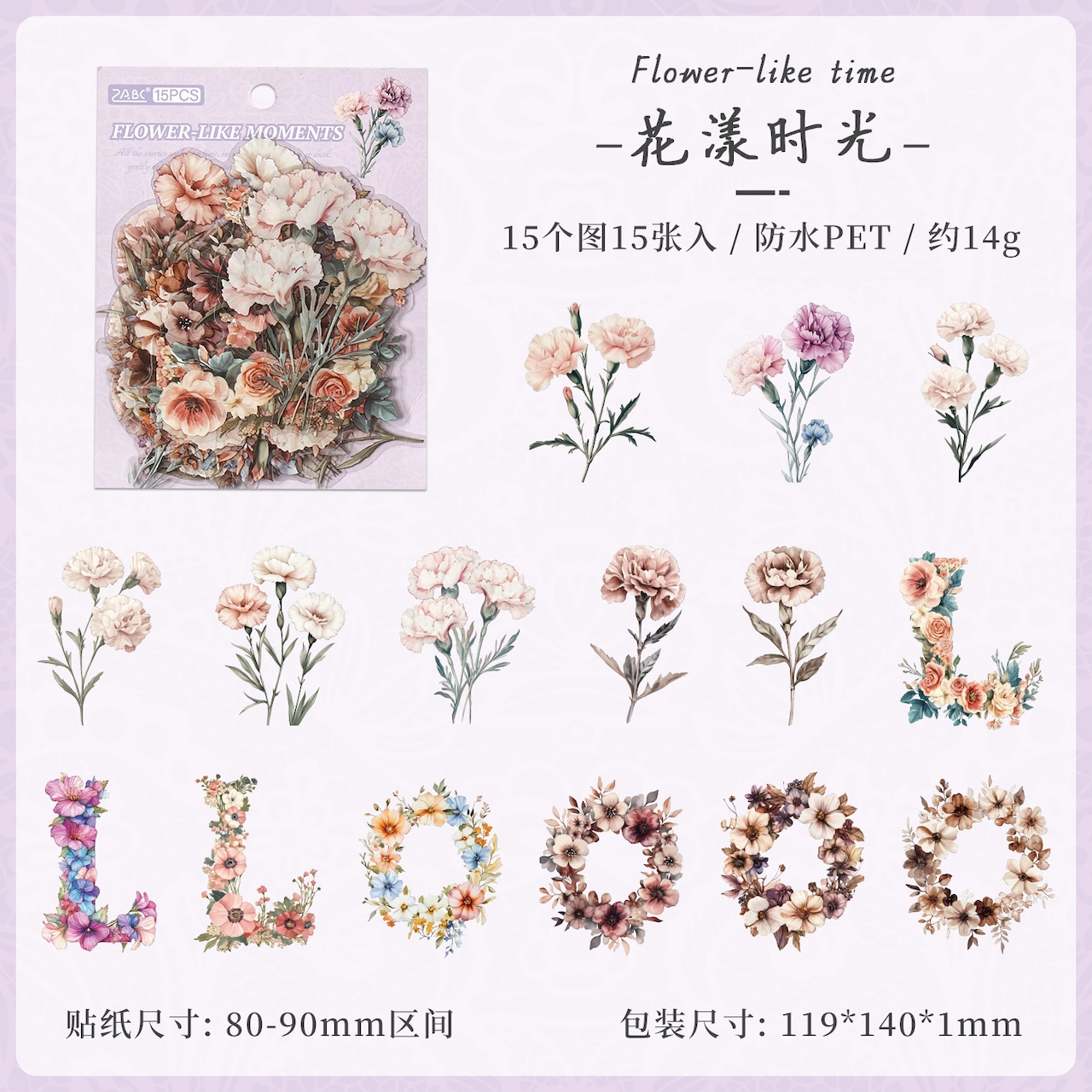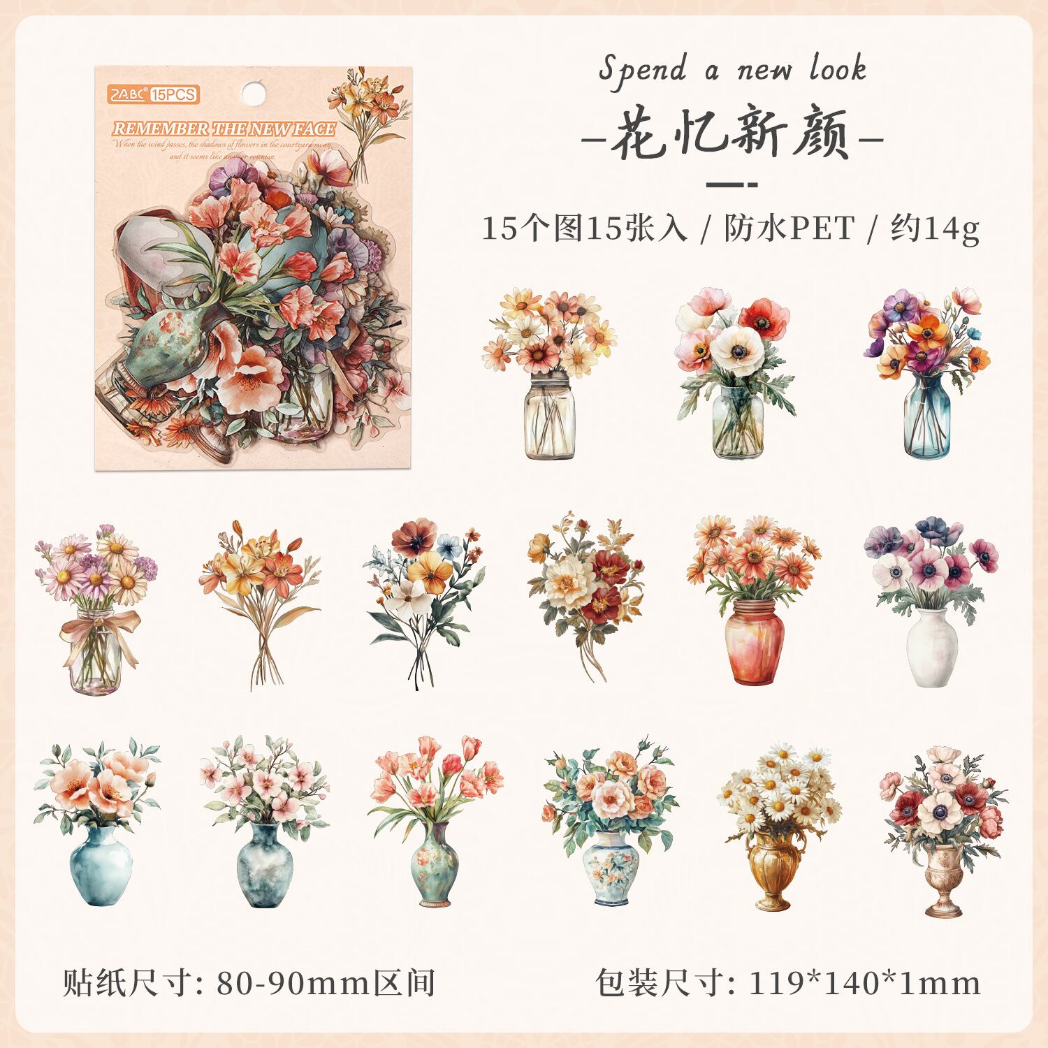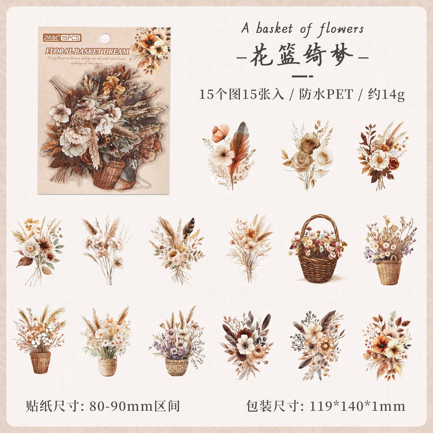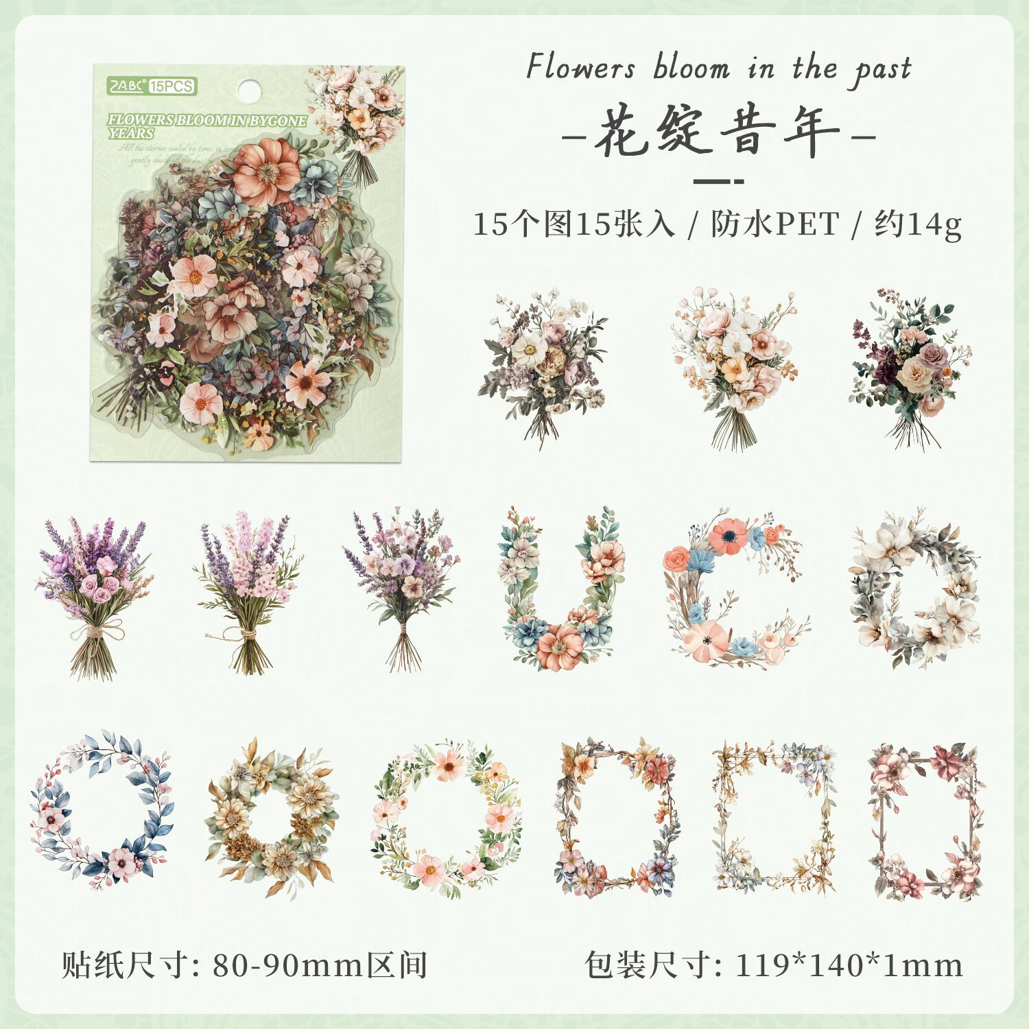 シール レトロな花 6種類90枚入り コラージュ 素材