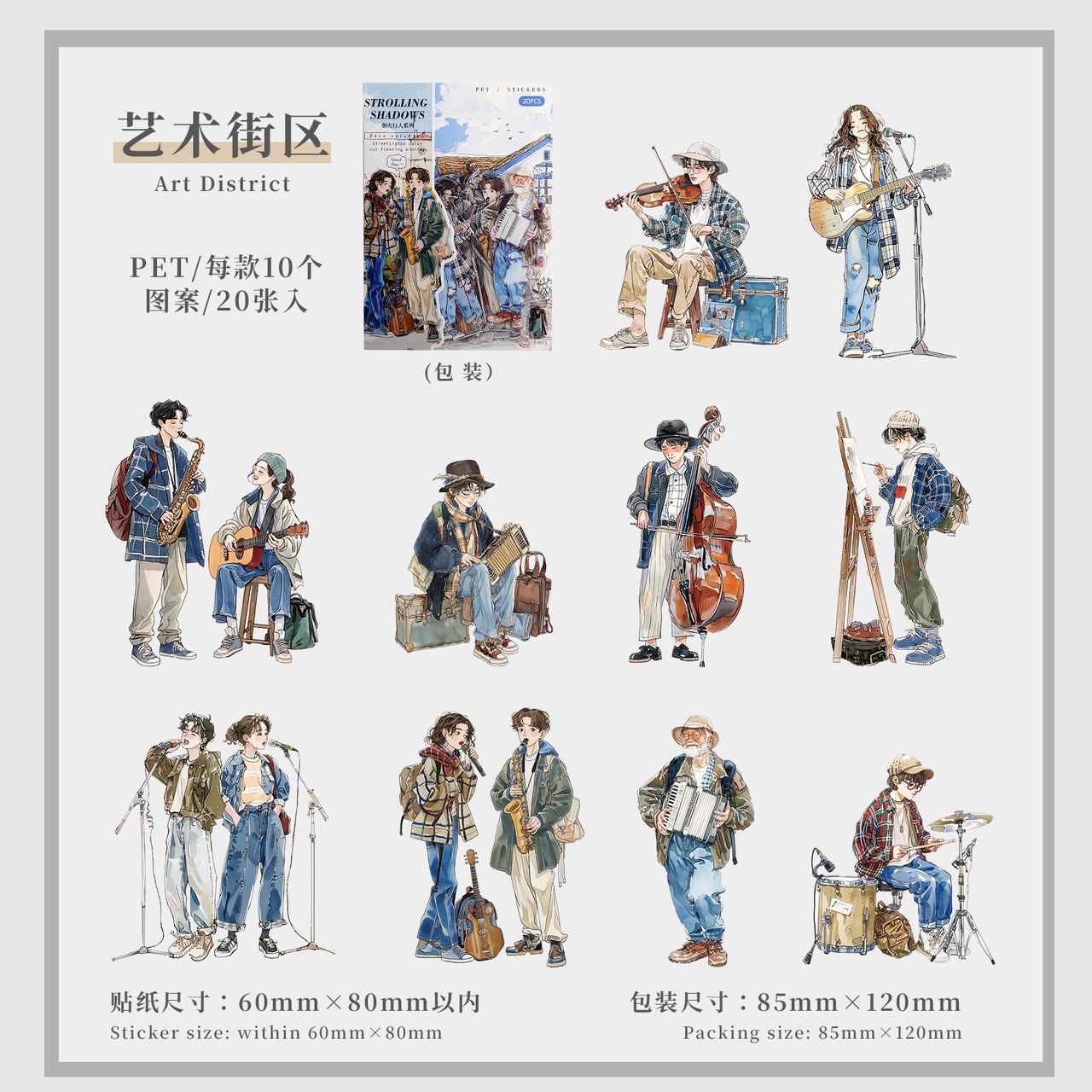 シール 花火と歩行者シリーズ 6種類120枚入り コラージュ 素材