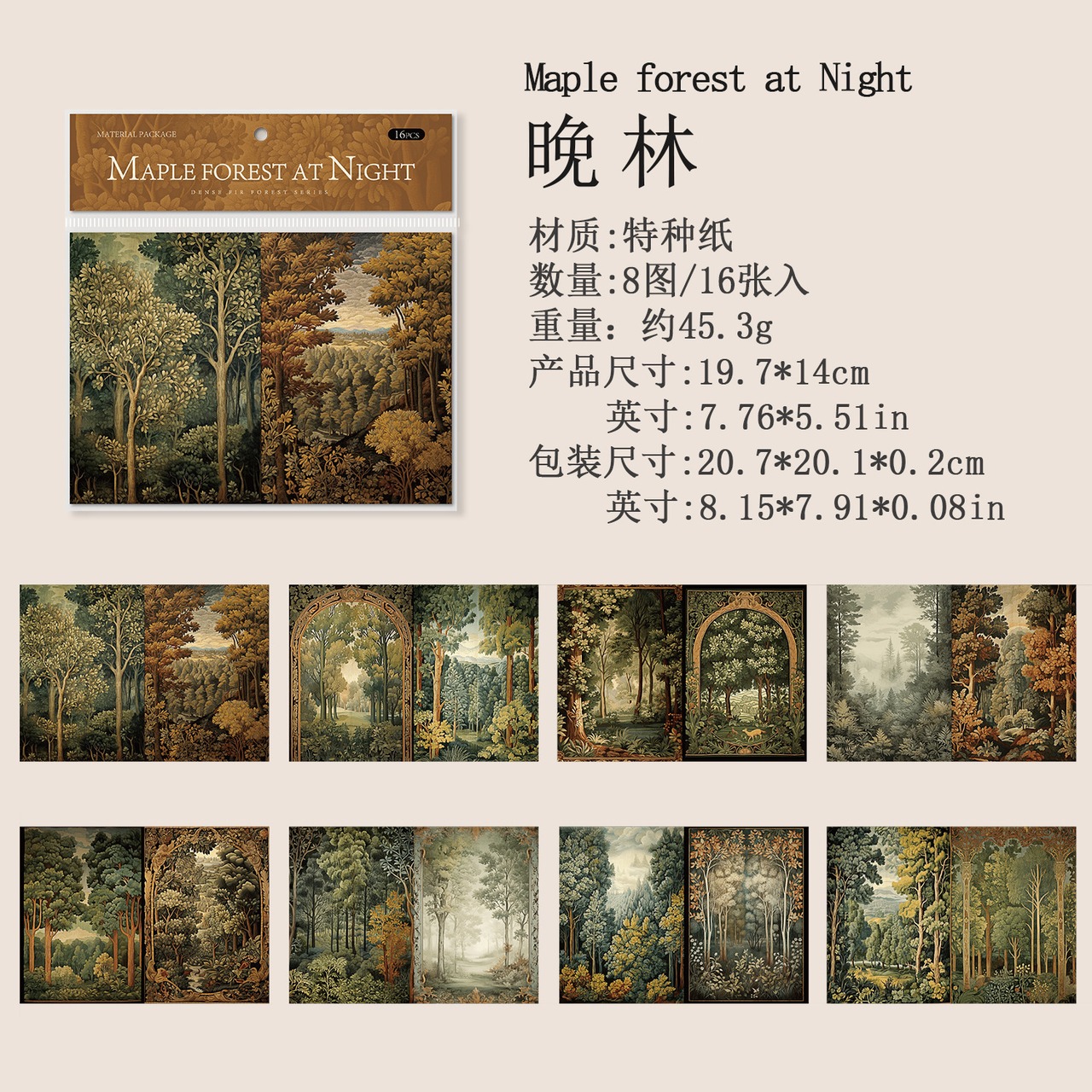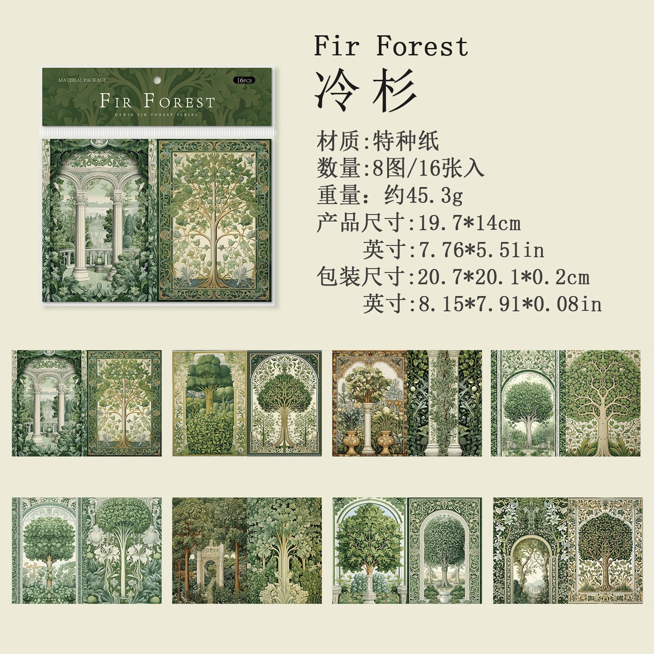 紙もの 深いモミの森 4種類64枚入り コラージュ 素材