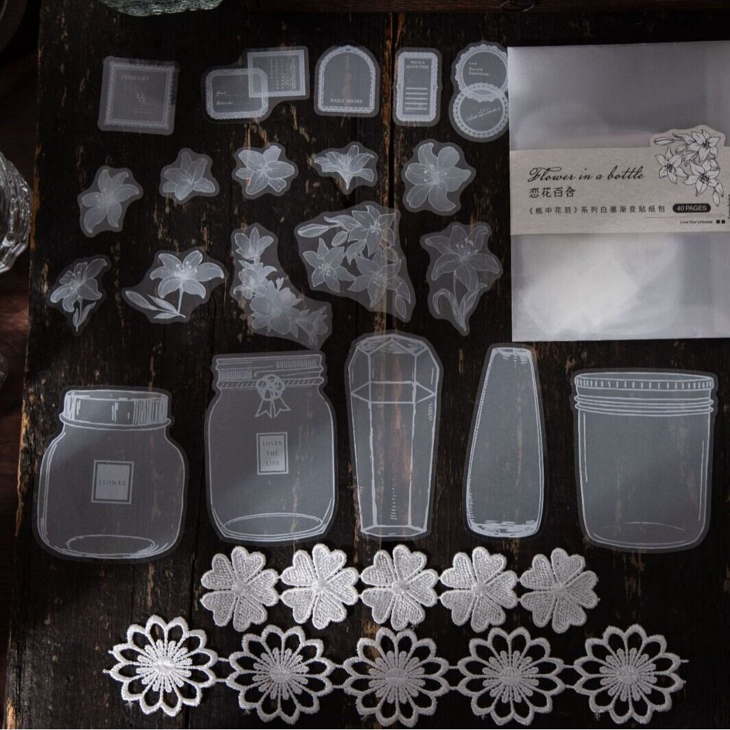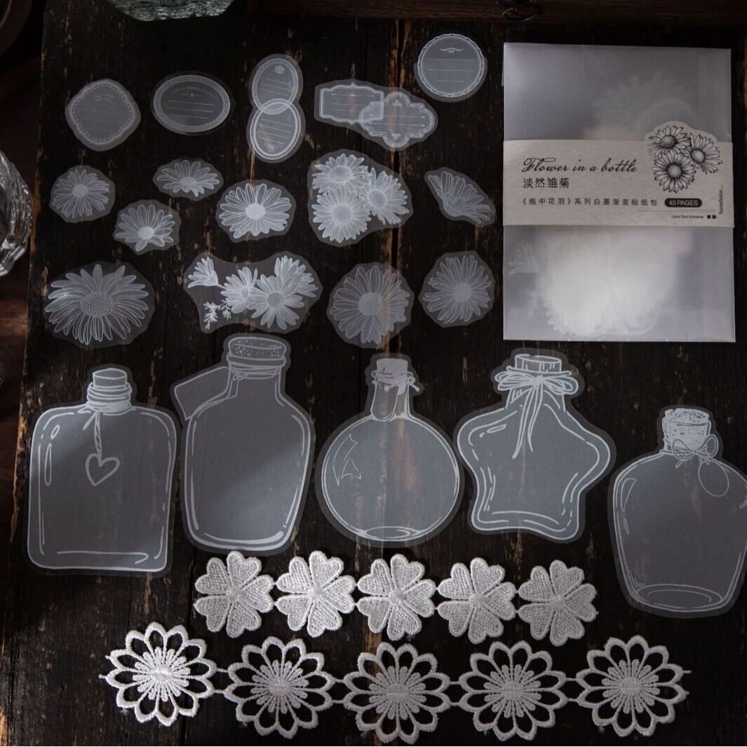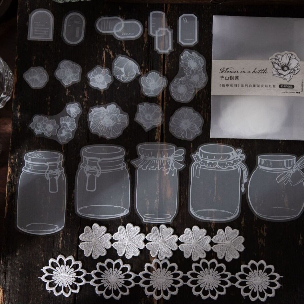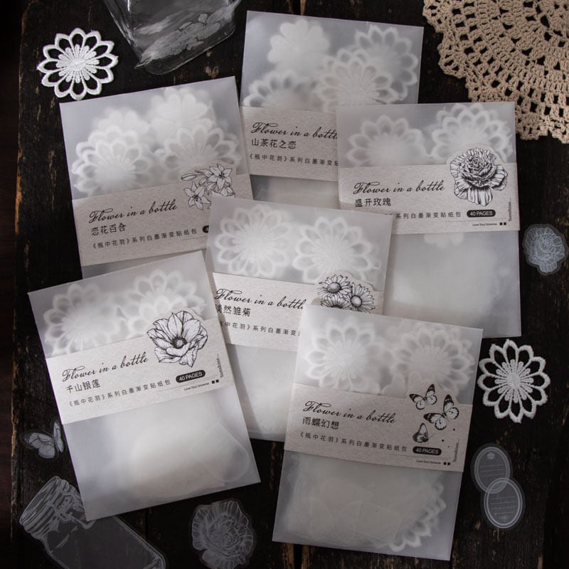 シール 花瓶の中の花の羽 6種類240枚入り コラージュ 素材