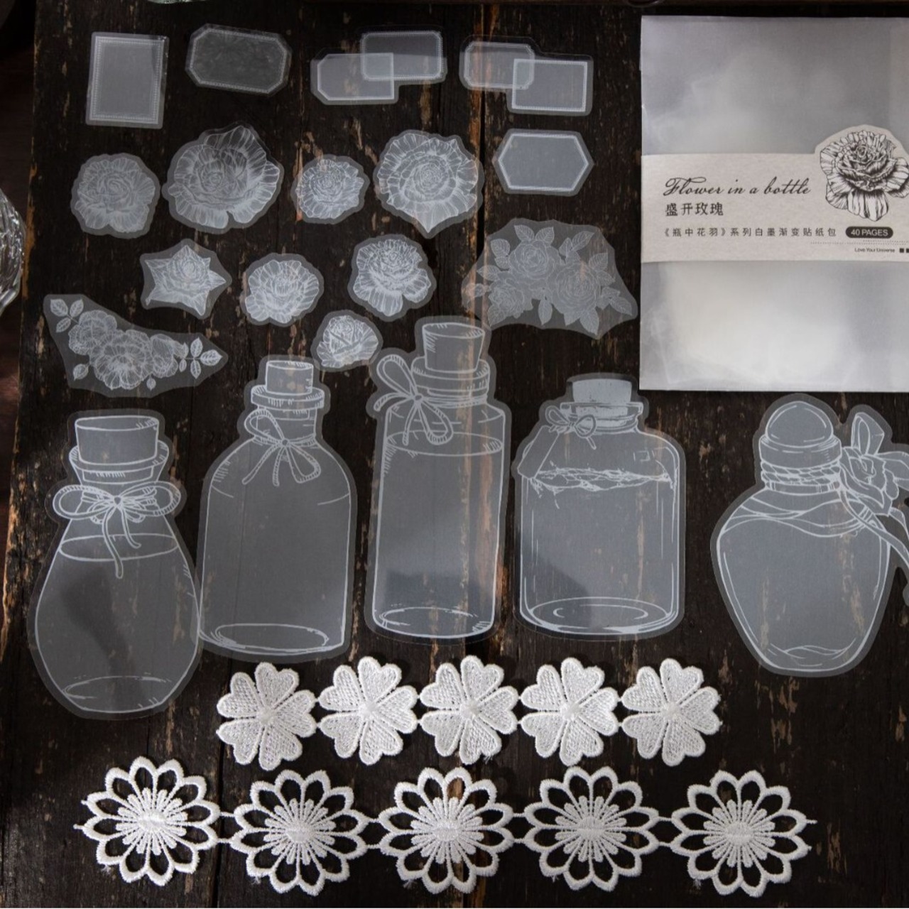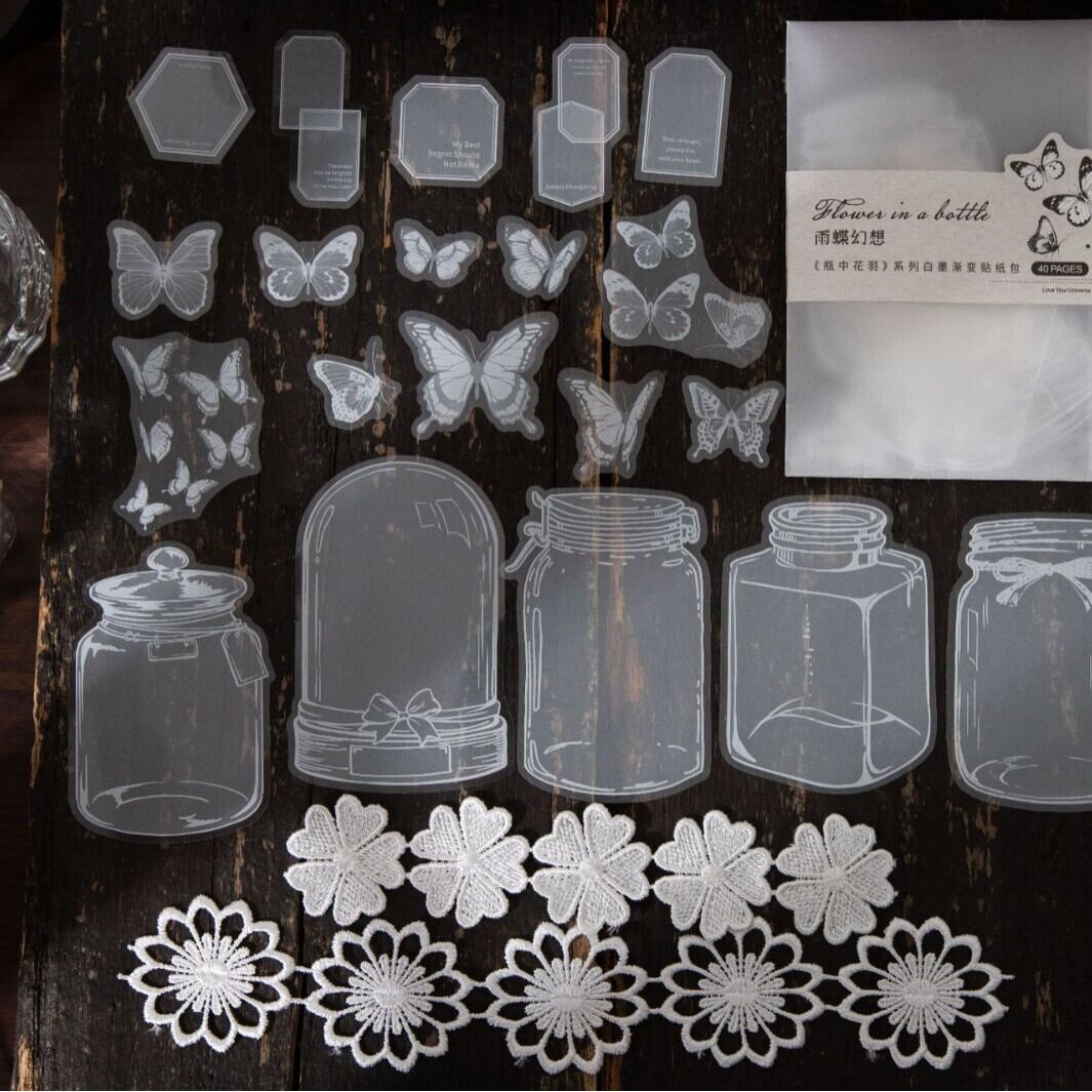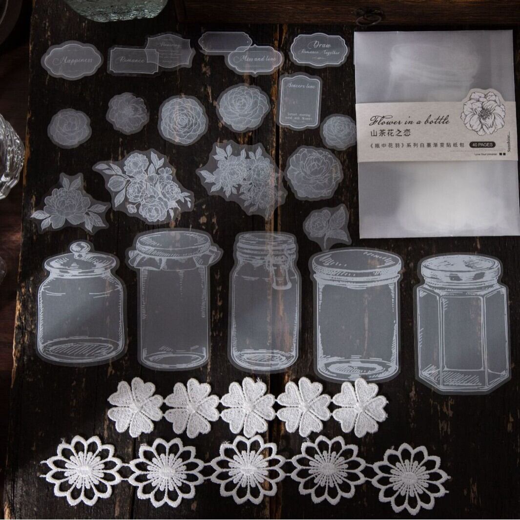 シール 花瓶の中の花の羽 6種類240枚入り コラージュ 素材