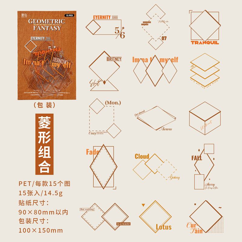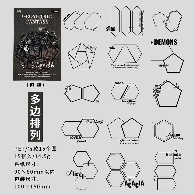 シール 幾何学ファンタジーシリーズ 6種類90枚入り コラージュ 素材