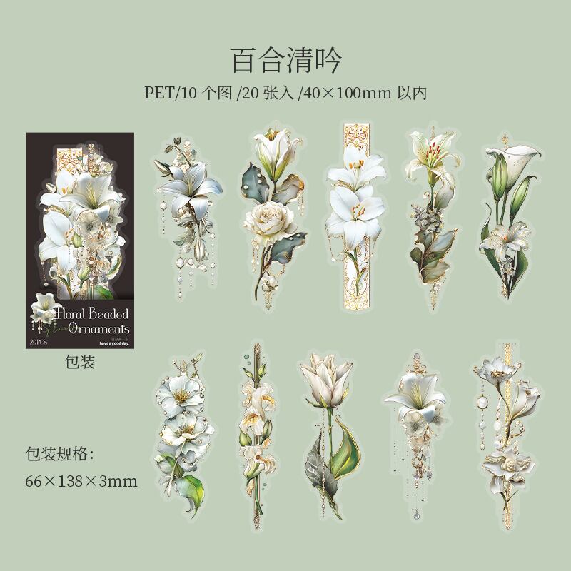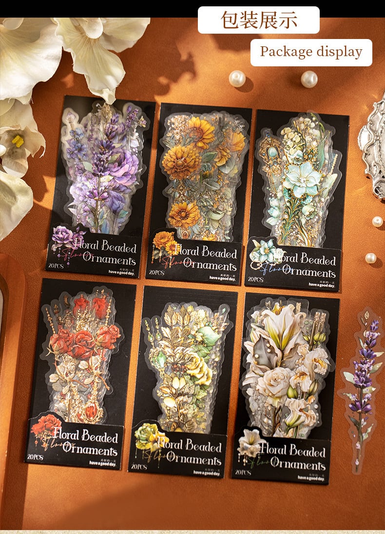 シール 花のビーズ細工 6種類120枚入り コラージュ 素材