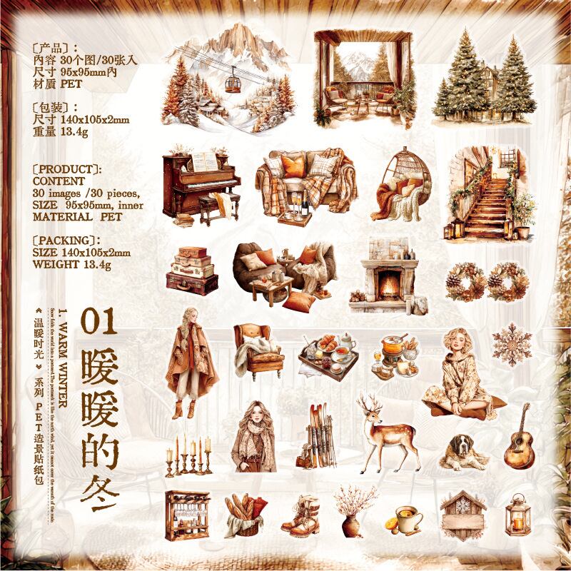 シール 温かいひととき 6種類180枚入り コラージュ 素材