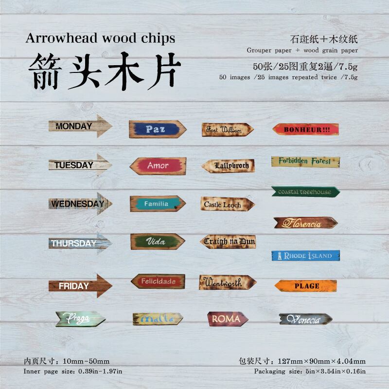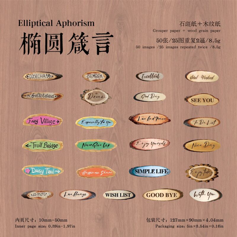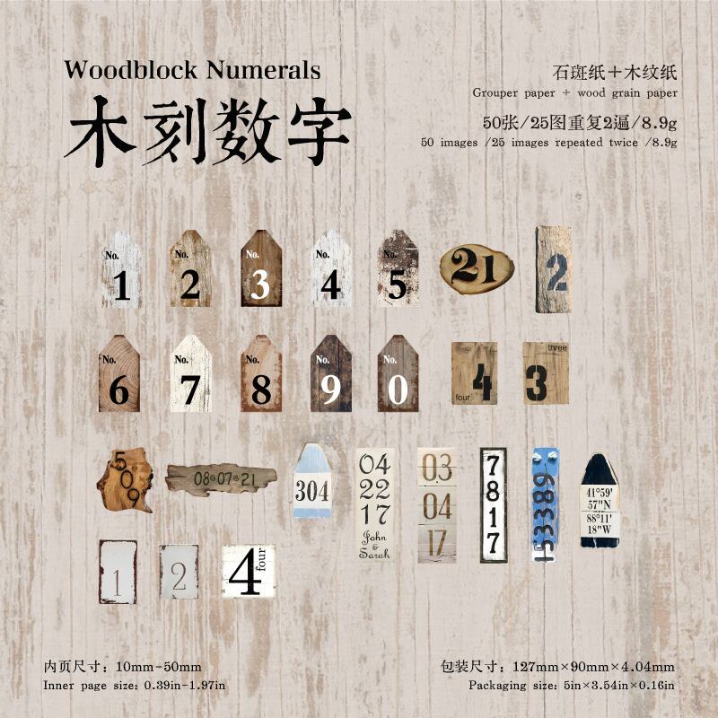シール 紙に書かれた木の文字 6種類300枚入り コラージュ 素材