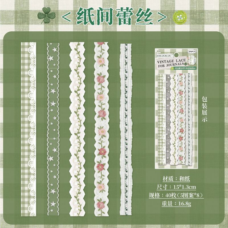 シール レース郵便局シリーズ レーストリム付きステッカー 4種類160枚入り コラージュ 素材