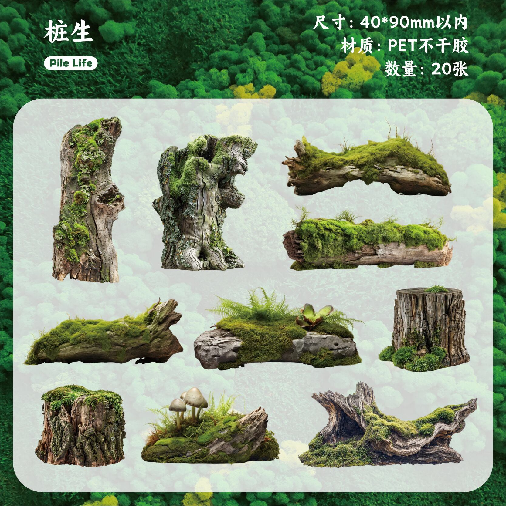 シール 苔シリーズ 6種類120枚入り コラージュ 素材