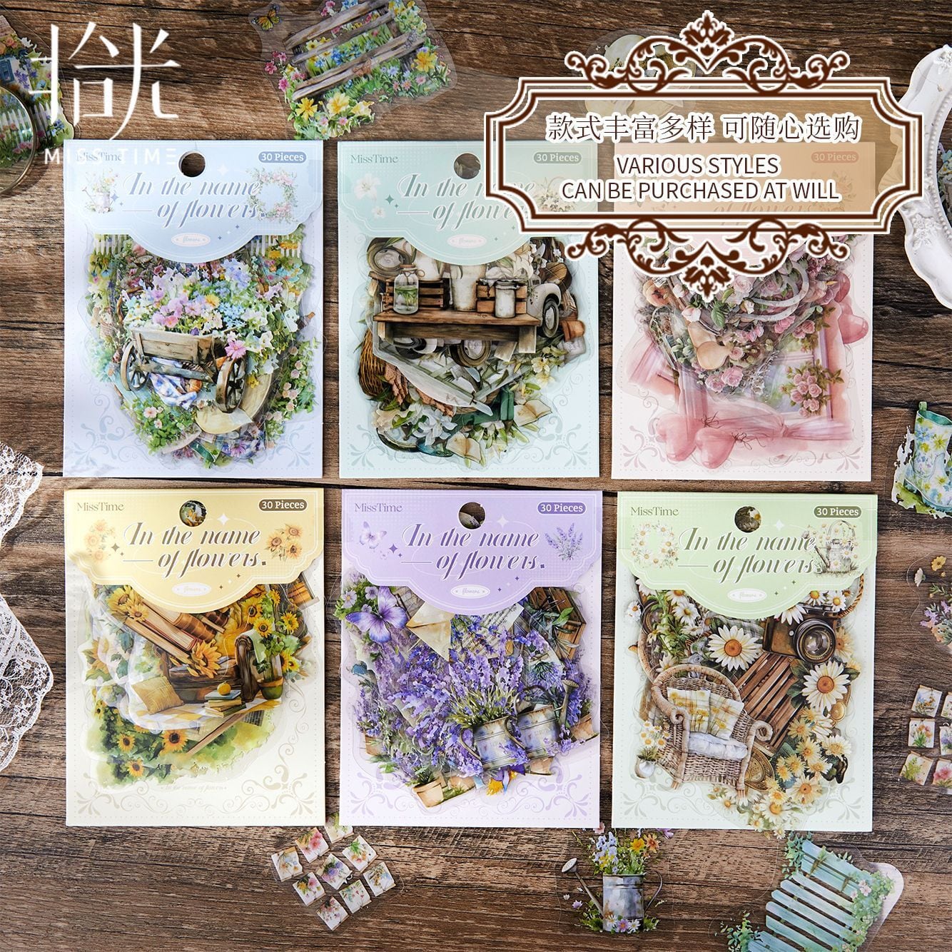 シール 花の造園ステッカー 6種類180枚入り コラージュ 素材