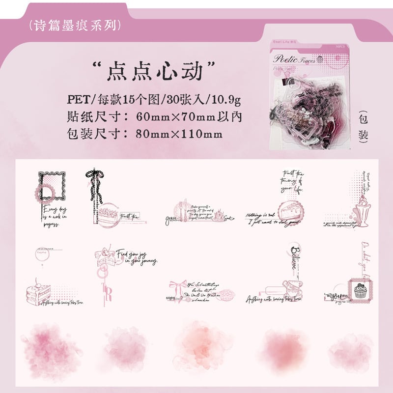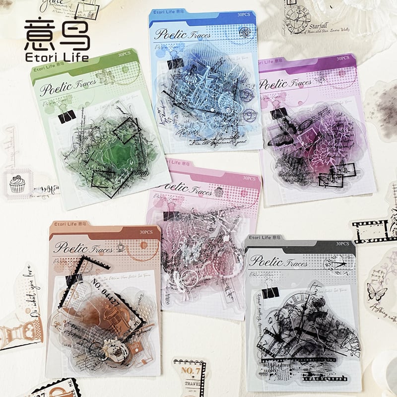 シール 詩とインクの痕跡シリーズ 6種類180枚入り コラージュ 素材
