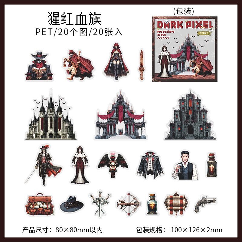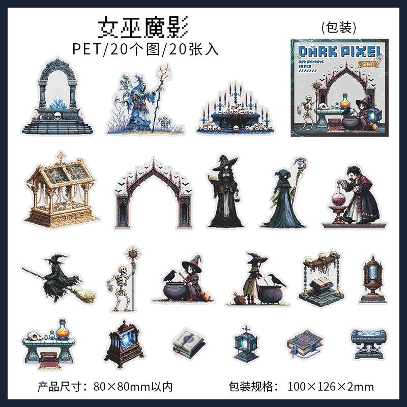 シール 暗いピクセル 4種類80枚入り コラージュ 素材
