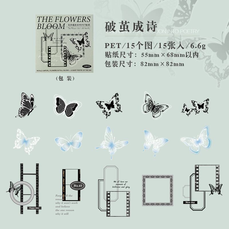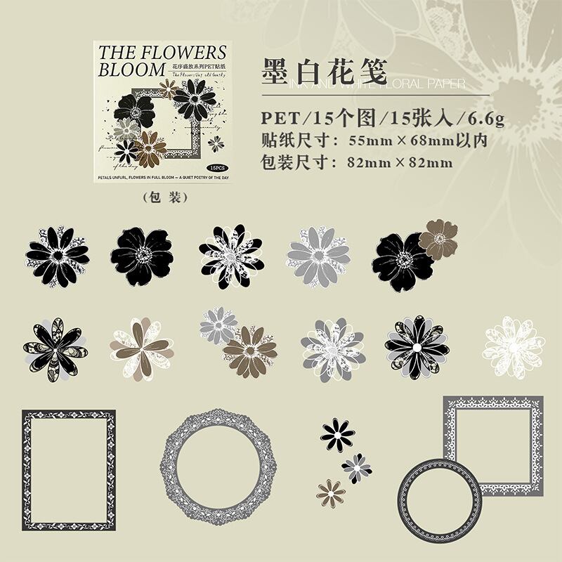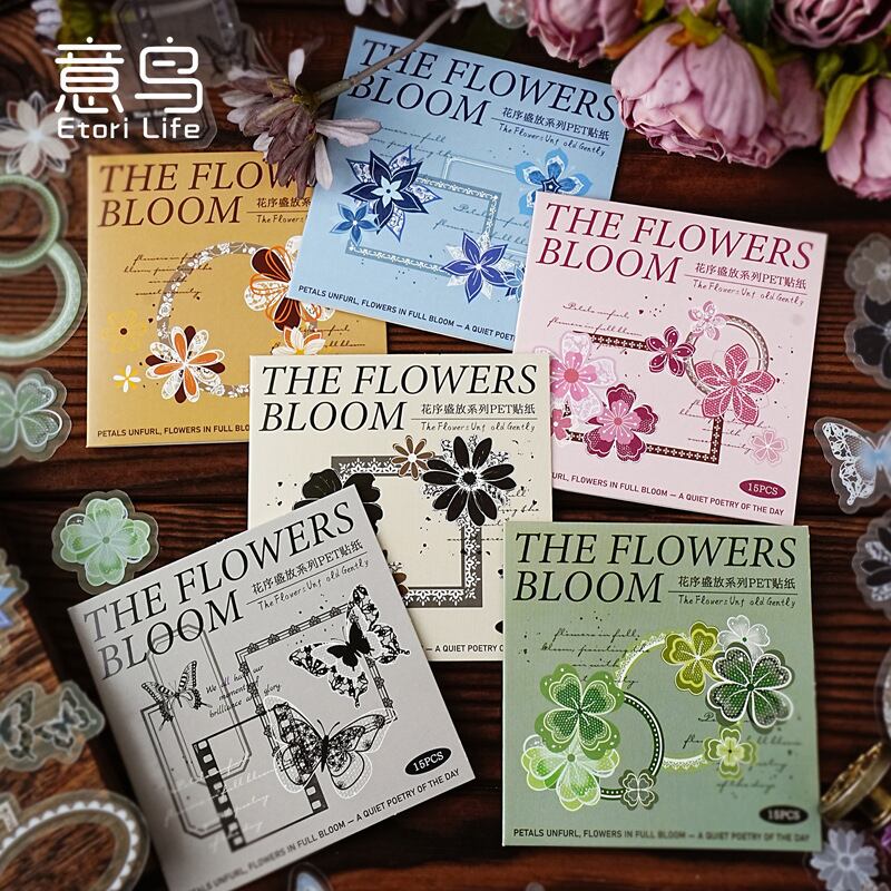 シール 開花シリーズ 6種類90枚入り コラージュ 素材